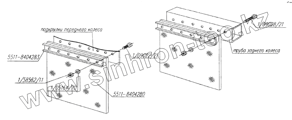 Каталог запасных частей к технике: Нефтекамский автозавод НефАЗ-5299 (надстройка). Установка брызговиков