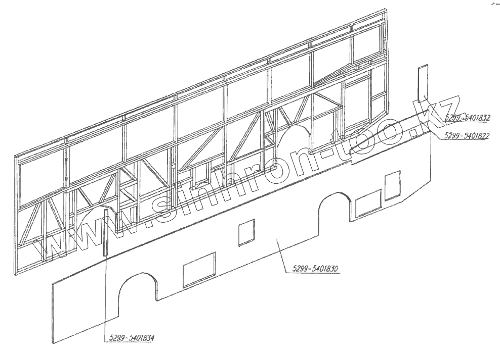 Каталог запасных частей к технике: Нефтекамский автозавод НефАЗ-5299 (надстройка). Установка панелей наружной облицовки левой боковины