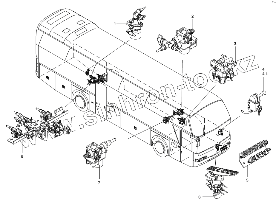 Каталог запасных частей к технике: Neoplan N 116 (MAN) E3. BRAKE VALVE OVERALL VIEW