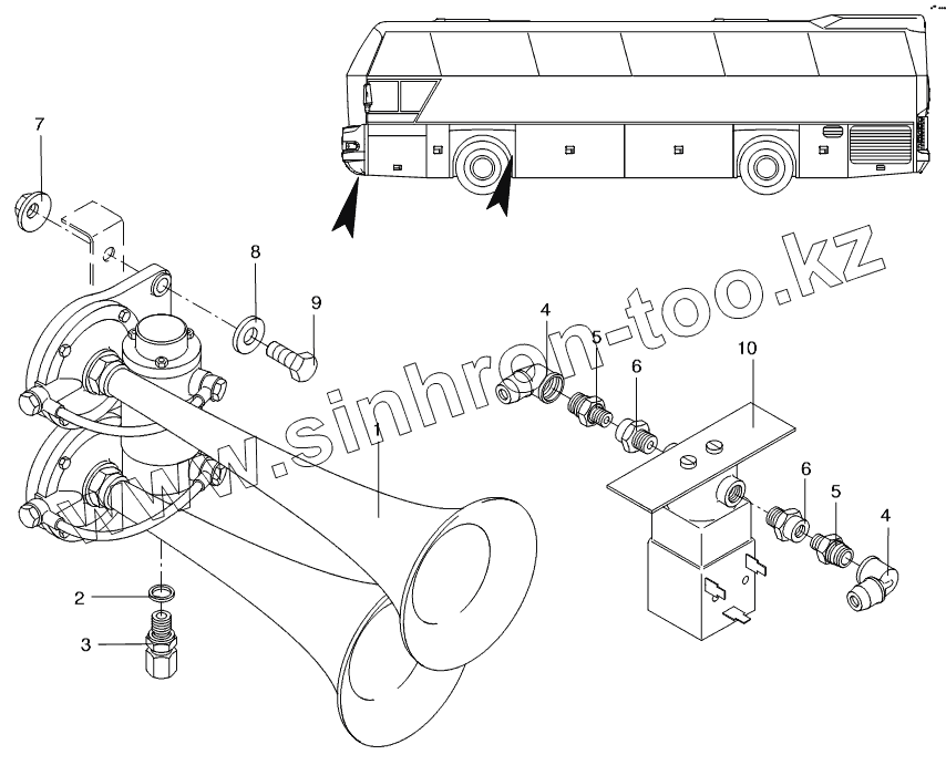 Каталог запасных частей к технике: Neoplan N 116 (MAN) E3. HORN