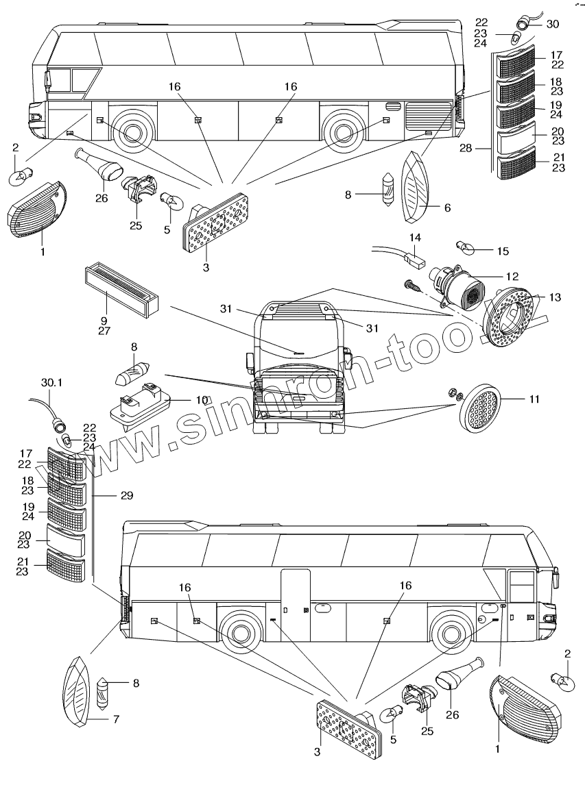 Каталог запасных частей к технике: Neoplan N 116 (MAN) E3. OUTSIDE LIGHTING
