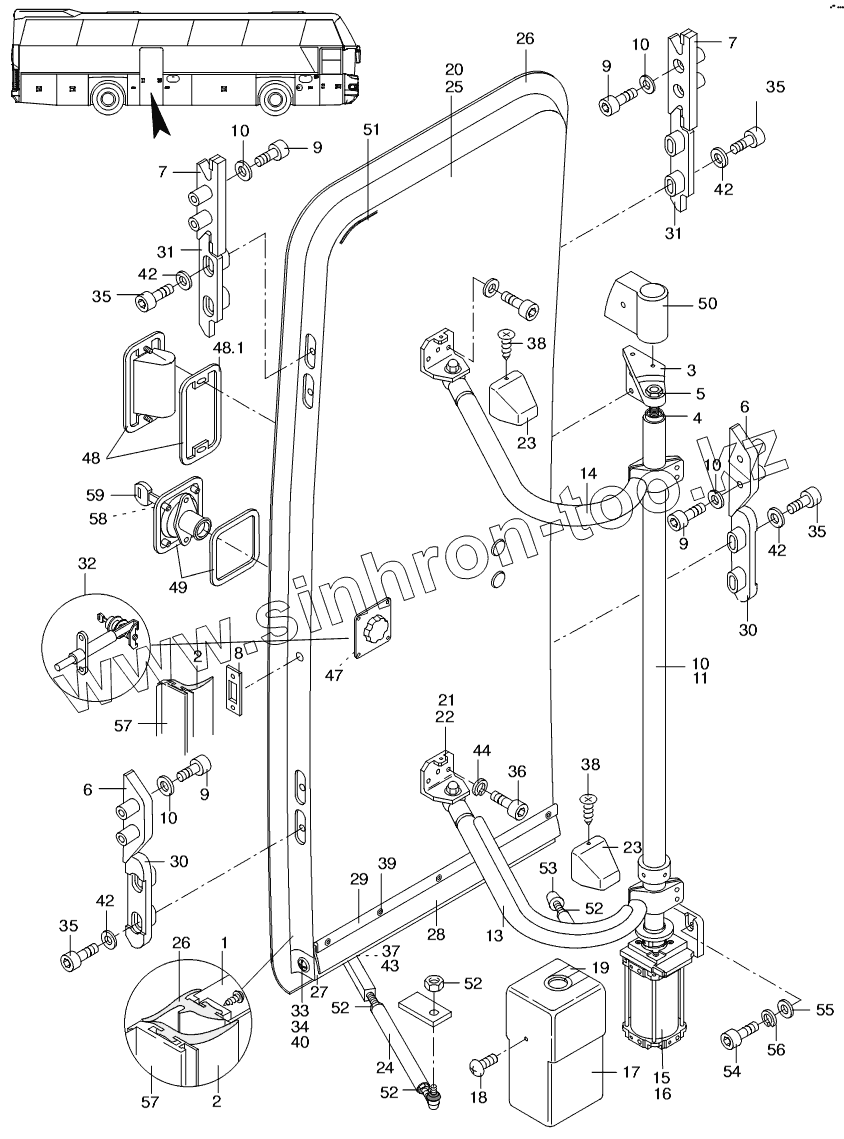Каталог запасных частей к технике: Neoplan N 116 (MAN) E3. OUTWARD-SWINGING DOOR REAR