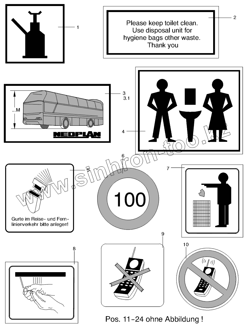 Каталог запасных частей к технике: Neoplan N 116 (MAN) E3. SAFETY SIGNS