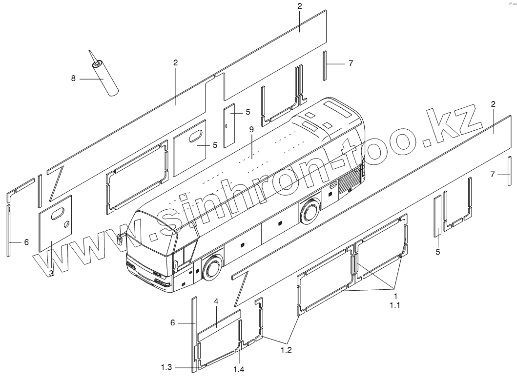 Каталог запасных частей к технике: Neoplan N 116 (MAN) E3. SHEETING OUTSIDE