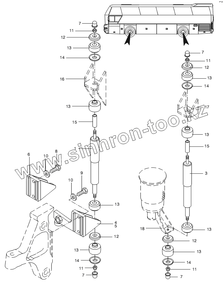 Каталог запасных частей к технике: Neoplan N 116 (MAN) E3. SHOCK ABSORBER AND MOUNT