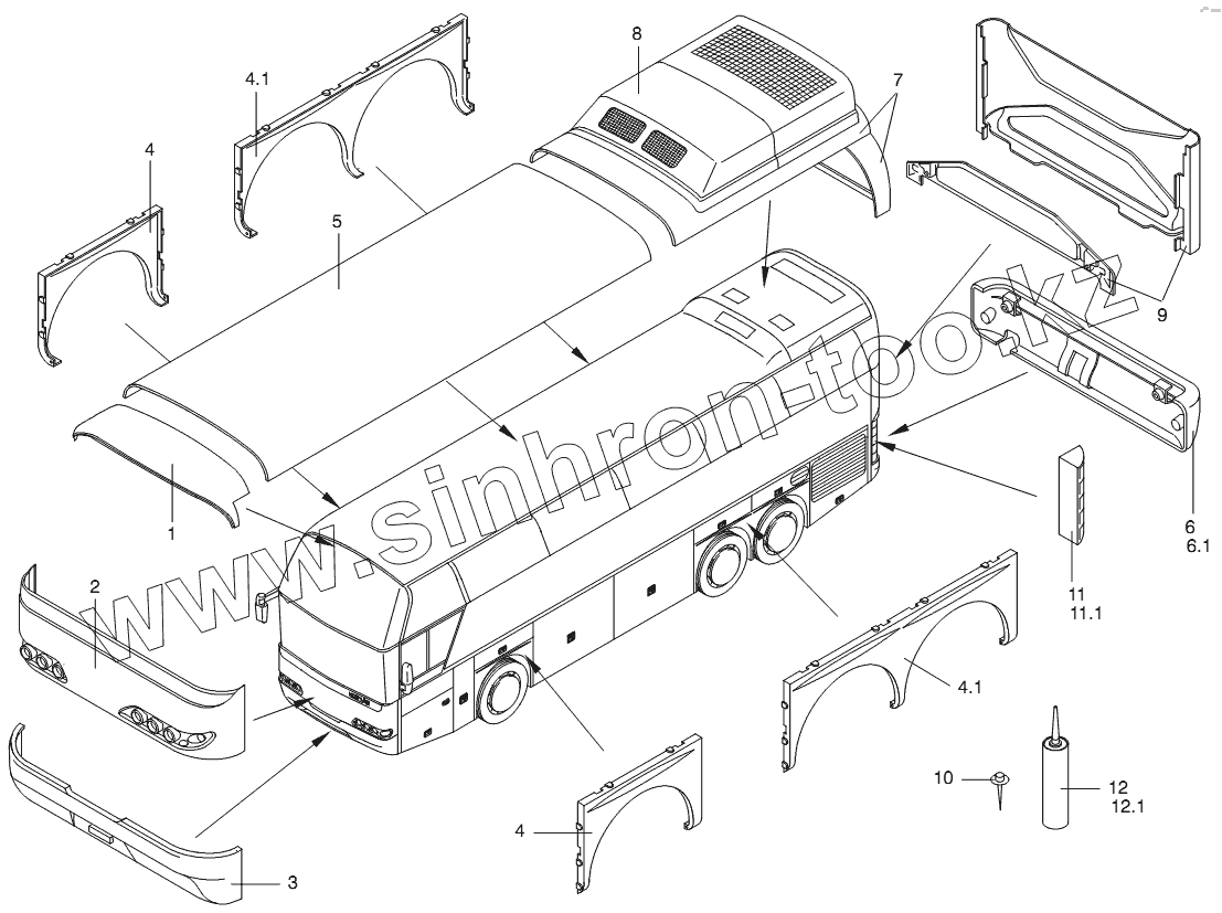 Каталог запасных частей к технике: Neoplan N 116 (MAN) E3. SYNTHETIC PARTS OUTSIDE