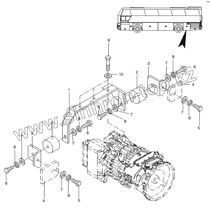 Каталог запасных частей к технике: Neoplan N 116 (MAN) E3. TRANSMISSION SUPPORT