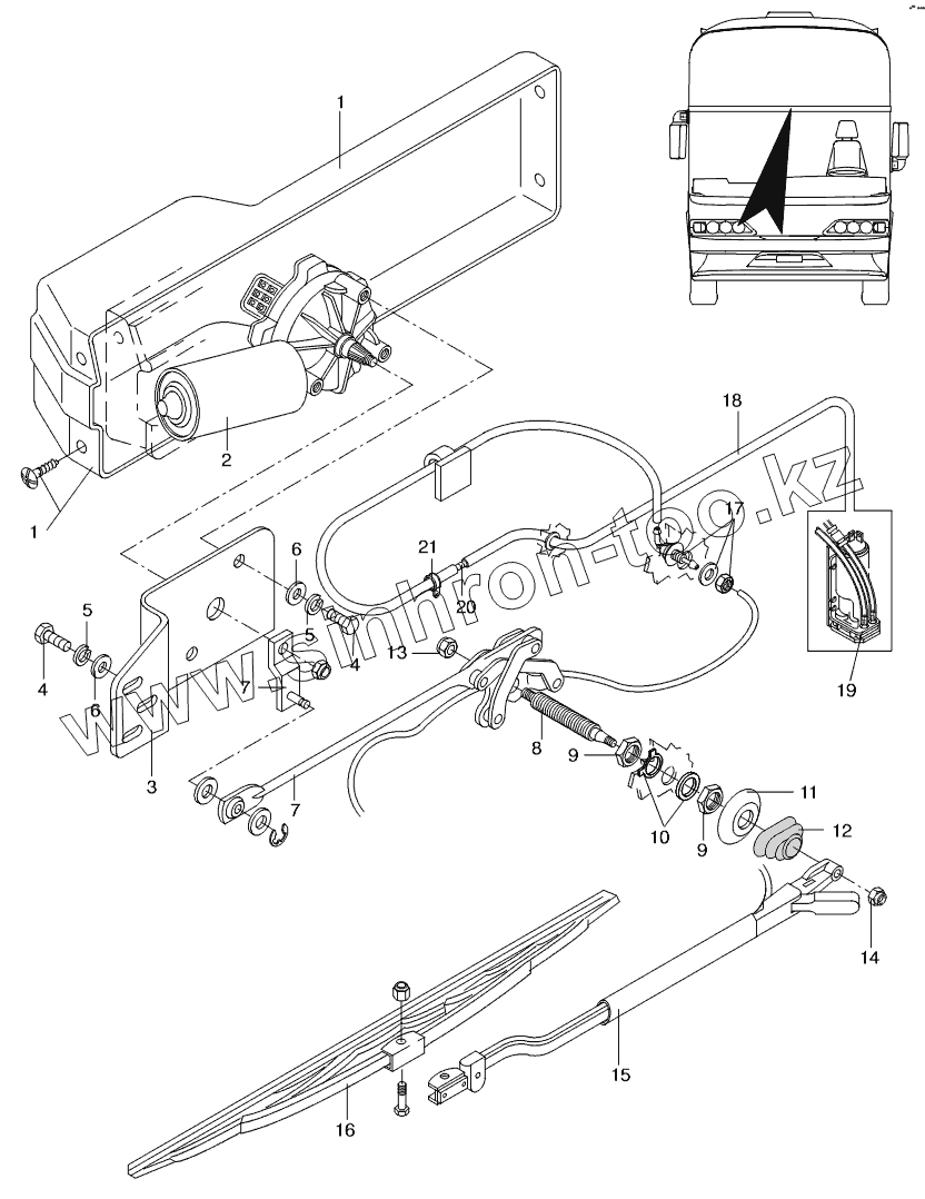 Каталог запасных частей к технике: Neoplan N 116 (MAN) E3. WIPERS-WASHER SYSTEM UPPER