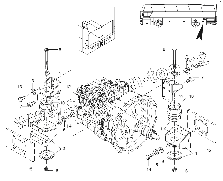 Каталог запасных частей к технике: Neoplan N 116 (MAN) E3 (вар.). GEARBOX CARRIER/ MOUNTING