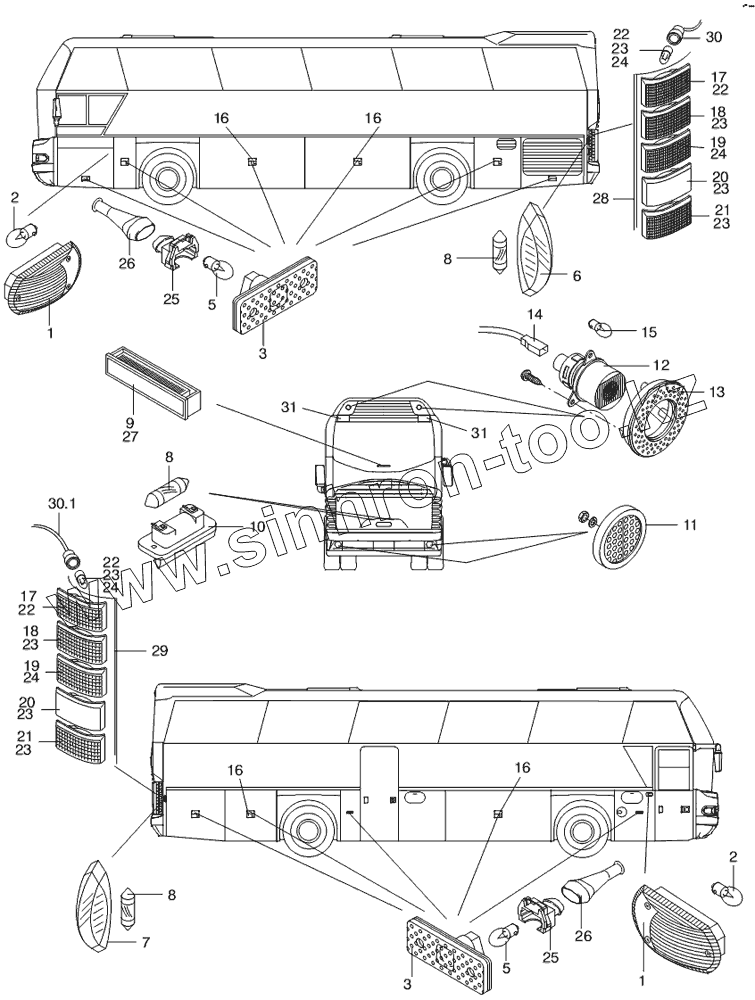Каталог запасных частей к технике: Neoplan N 116 (MAN) E3 (вар.). LIGHTING OUTSIDE