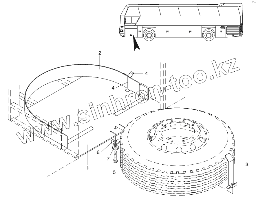 Каталог запасных частей к технике: Neoplan N 116 (MAN) E3 (вар.). RESERVE TYRE STORAGE