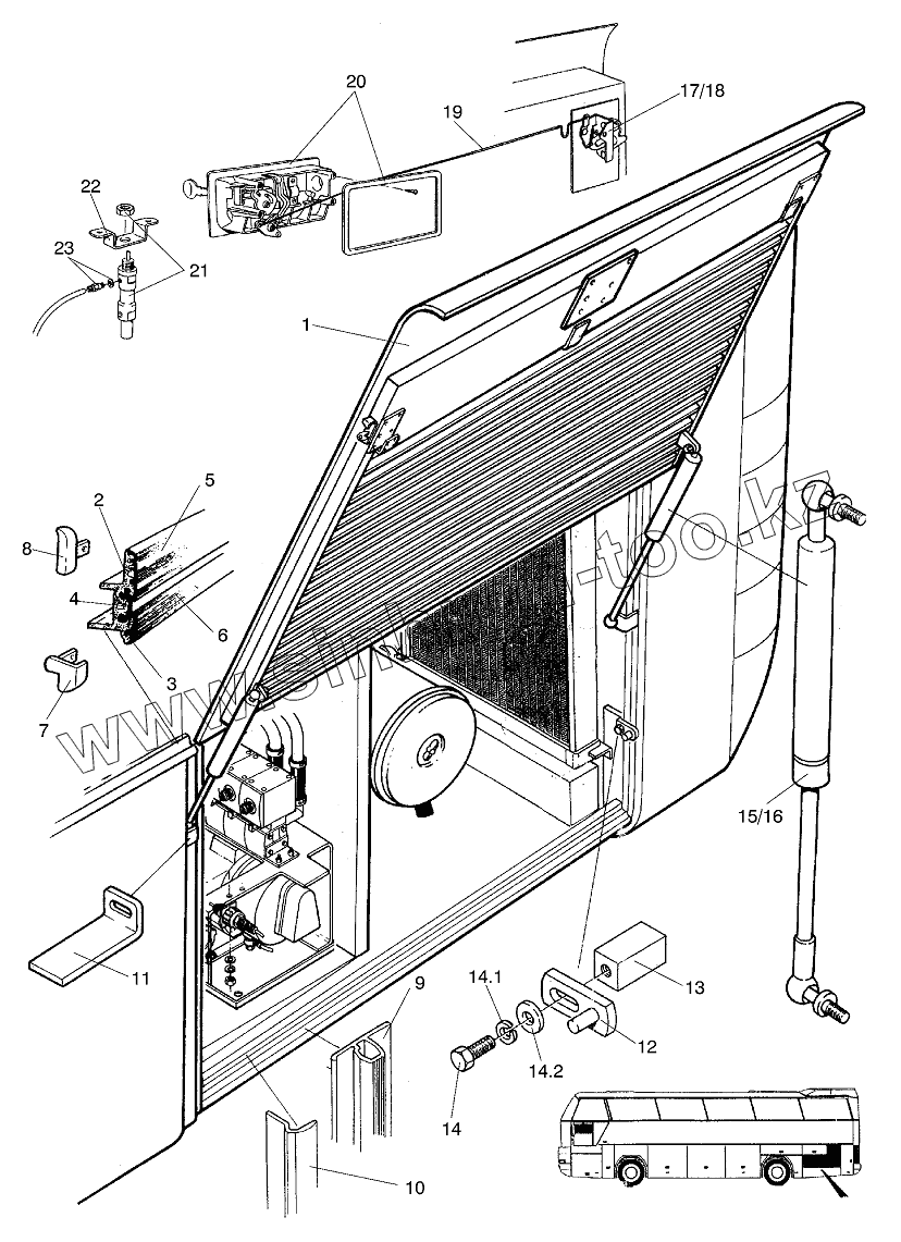 Каталог запасных частей к технике: Neoplan N 116 E2. LUGGAGE COMPARTEMENT LID