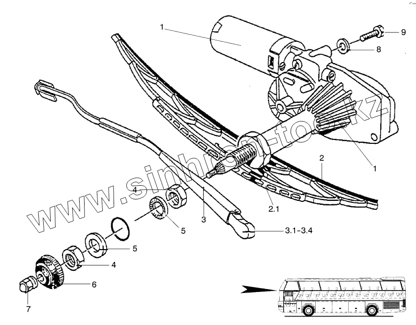 Каталог запасных частей к технике: Neoplan N 116 E2. WIPERS-WASHER SYSTEM OVER