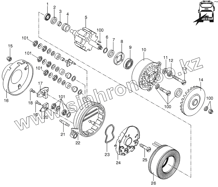 Каталог запасных частей к технике: Neoplan N 3316 (DC OM 501 LA) E3. ALTERNATOR