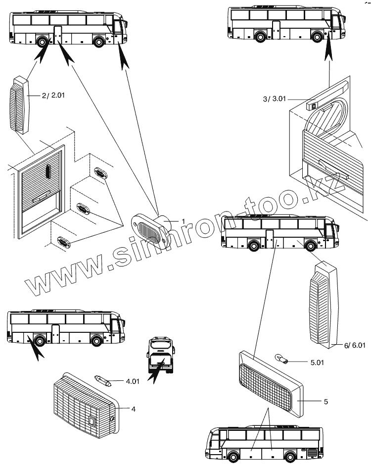 Каталог запасных частей к технике: Neoplan N 3316 (DC OM 501 LA) E3. INSIDE LIGHTING