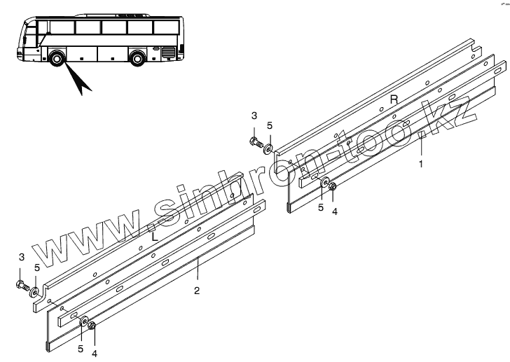 Каталог запасных частей к технике: Neoplan N 3316 (DC OM 501 LA) E3. MUD FLAP