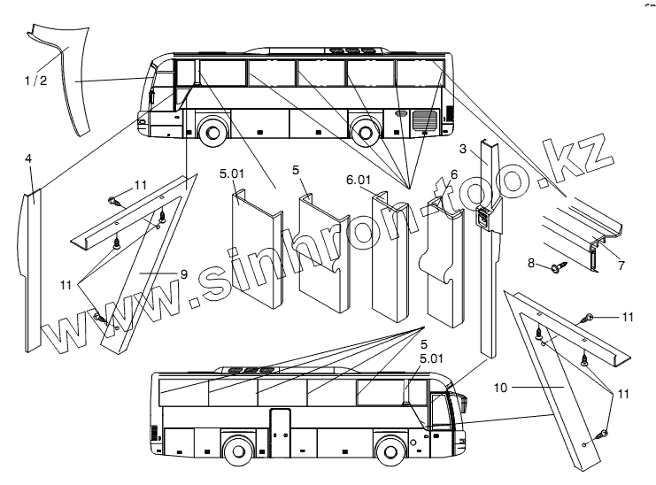 Каталог запасных частей к технике: Neoplan N 3316 (DC OM 501 LA) E3. PILLAR TRIM PANEL