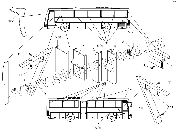 Каталог запасных частей к технике: Neoplan N 3316 (DC OM 501 LA) E3. PILLAR TRIM PANEL