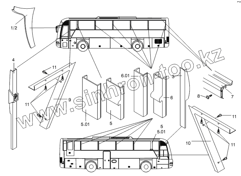 Каталог запасных частей к технике: Neoplan N 3316 (DC OM 501 LA) E3. PILLAR TRIM PANEL