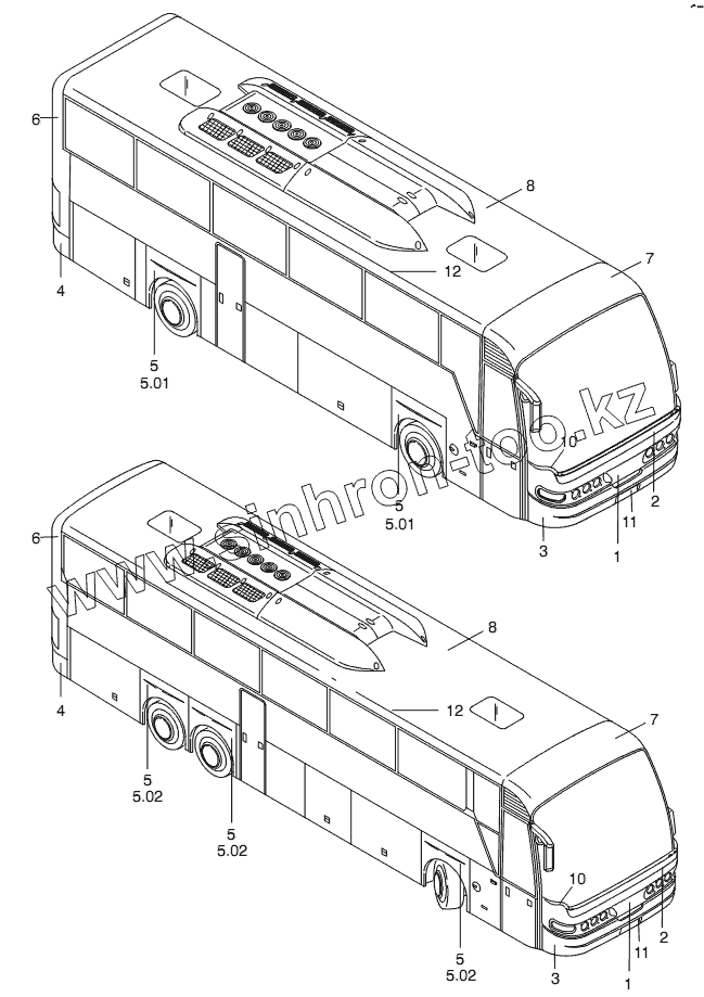 Каталог запасных частей к технике: Neoplan N 3316 (DC OM 501 LA) E3. SYNTHETIC PARTS OUTSIDE