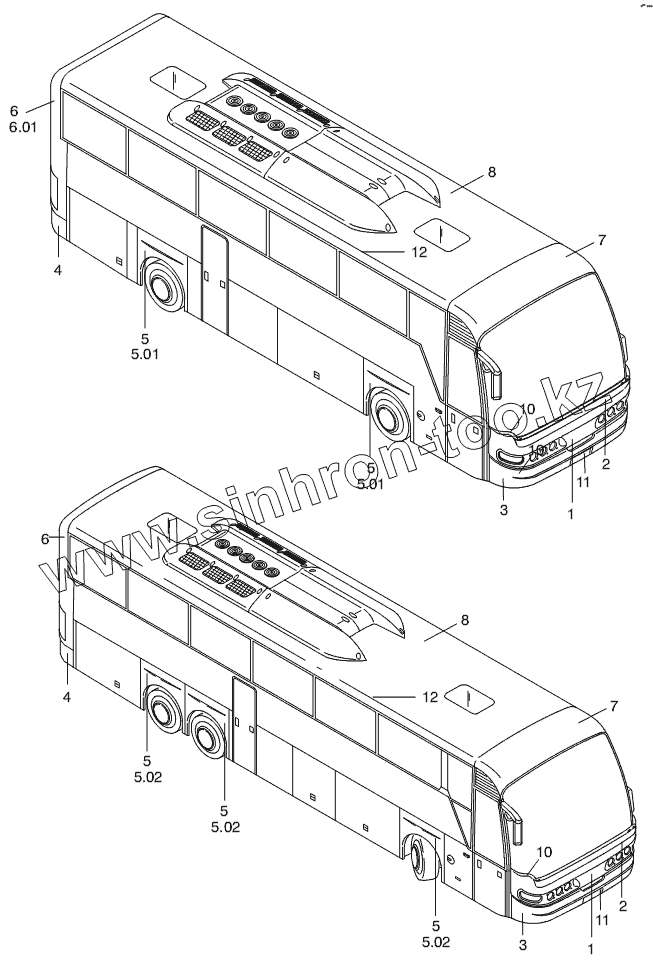 Каталог запасных частей к технике: Neoplan N 3316 (DC OM 501 LA) E3. SYNTHETIC PARTS OUTSIDE