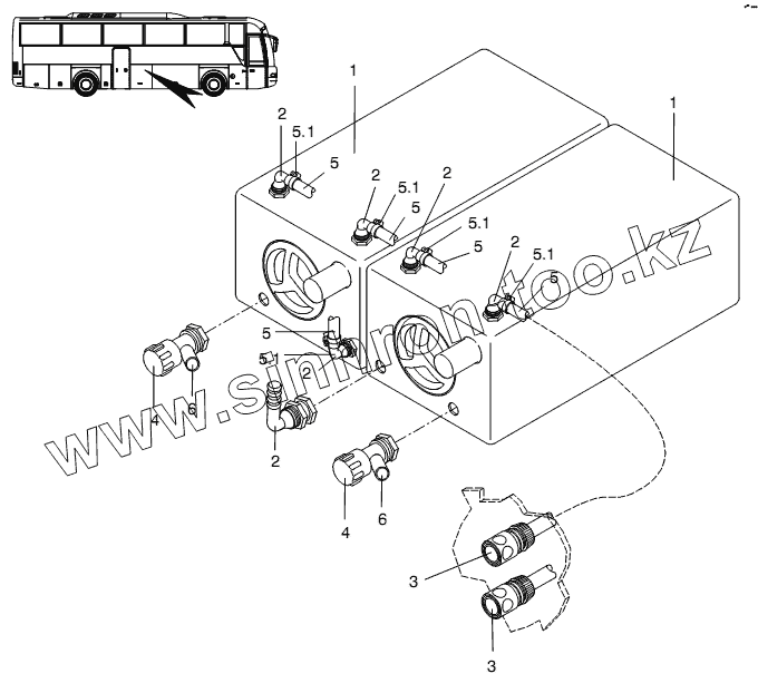 Каталог запасных частей к технике: Neoplan N 3316 (DC OM 501 LA) E3. WATER TANK