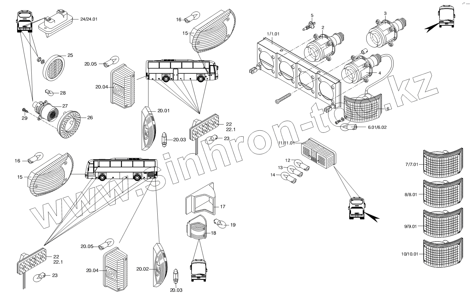 Каталог запасных частей к технике: Neoplan N 3316 (MAN D 2866 LOH 29) E3. LIGHTING OUTSIDE