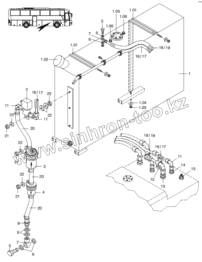 Каталог запасных частей к технике: Neoplan N 3316 (MAN D 2866 LOH 29) E3. RESERVE TANK
