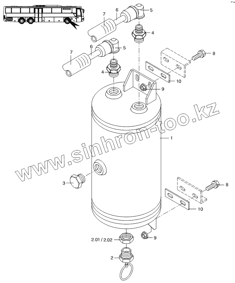 Каталог запасных частей к технике: Neoplan N 3318 U E3. AIR RESERVOIR