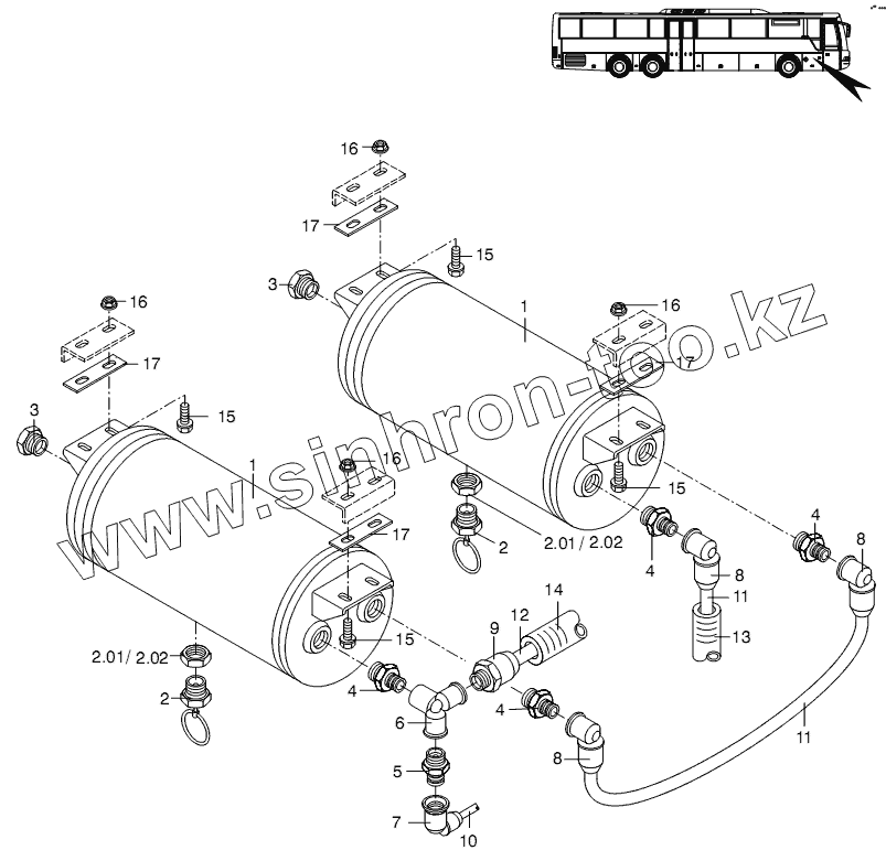 Каталог запасных частей к технике: Neoplan N 3318 U E3. AIR RESERVOIR