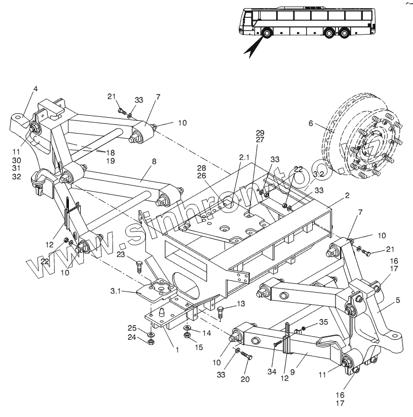 Каталог запасных частей к технике: Neoplan N 3318 U E3. FRONT AXLE PARTS