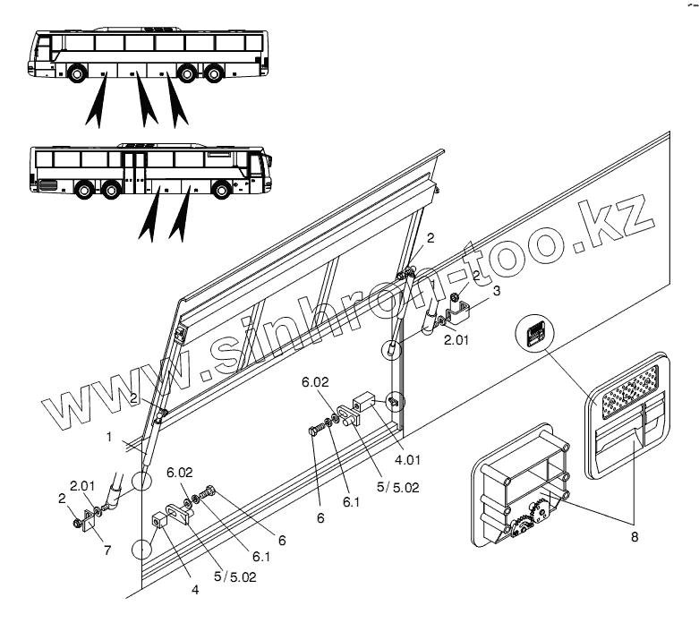 Каталог запасных частей к технике: Neoplan N 3318 U E3. SERVICE DOORS