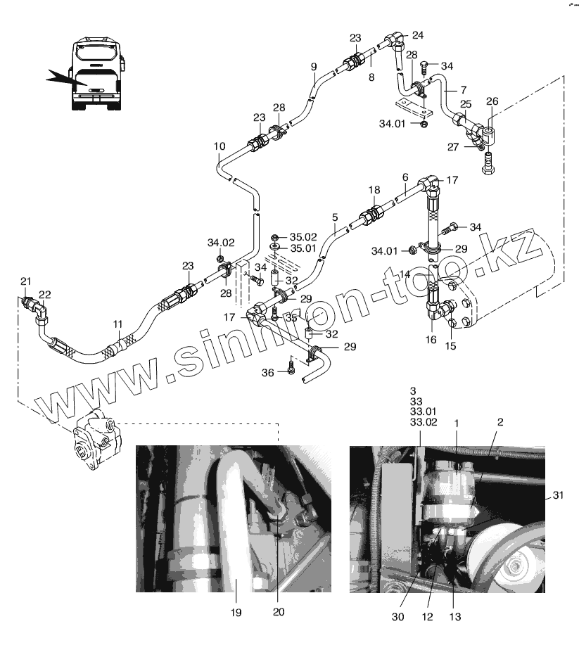 Каталог запасных частей к технике: Neoplan N 3318 U E3. STEERING HYDRAULICS