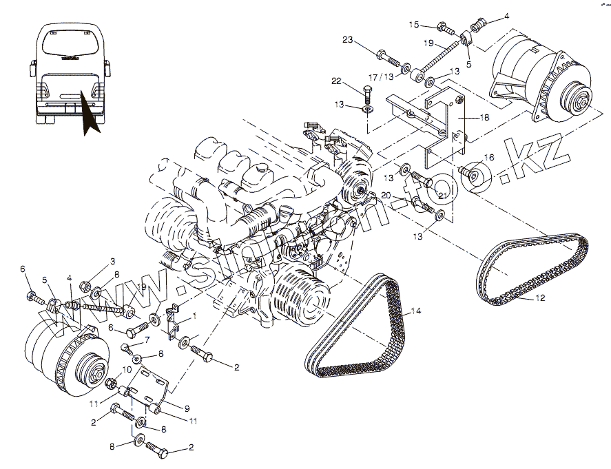 Каталог запасных частей к технике: Neoplan N 516 SHD (MAN) E2. ALTERNATOR BRACKET