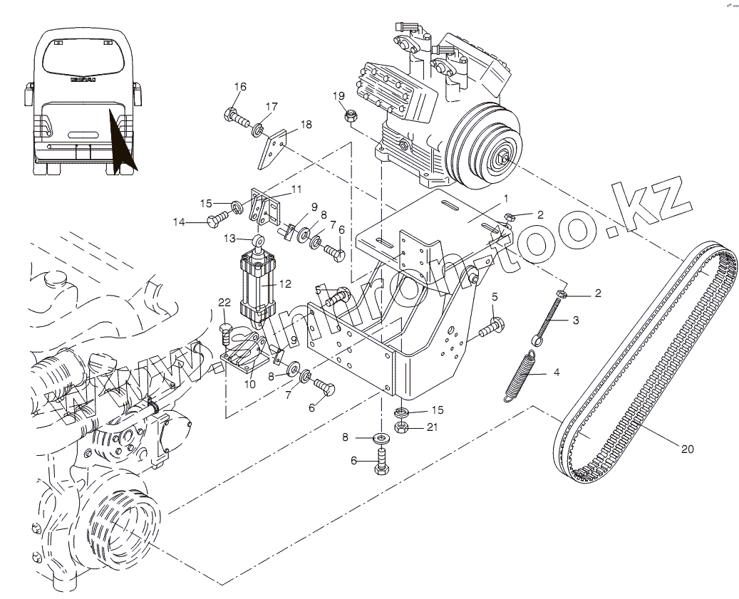Каталог запасных частей к технике: Neoplan N 516 SHD (MAN) E2. COMPRESSOR SUPPORT