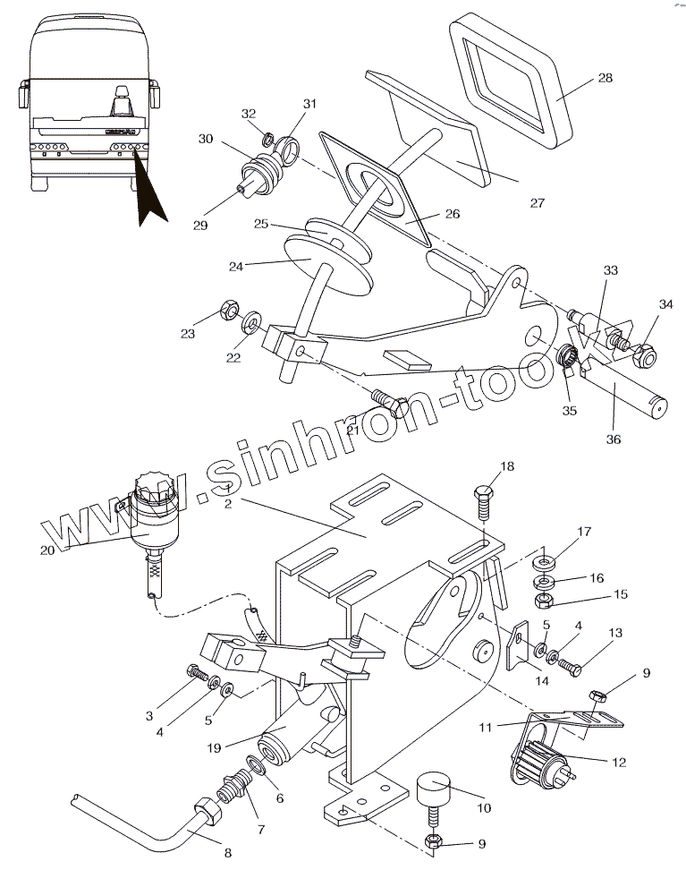 Каталог запасных частей к технике: Neoplan N 516 SHD (MAN) E2. COUPLING WITH PEDAL WITHOUT AVS