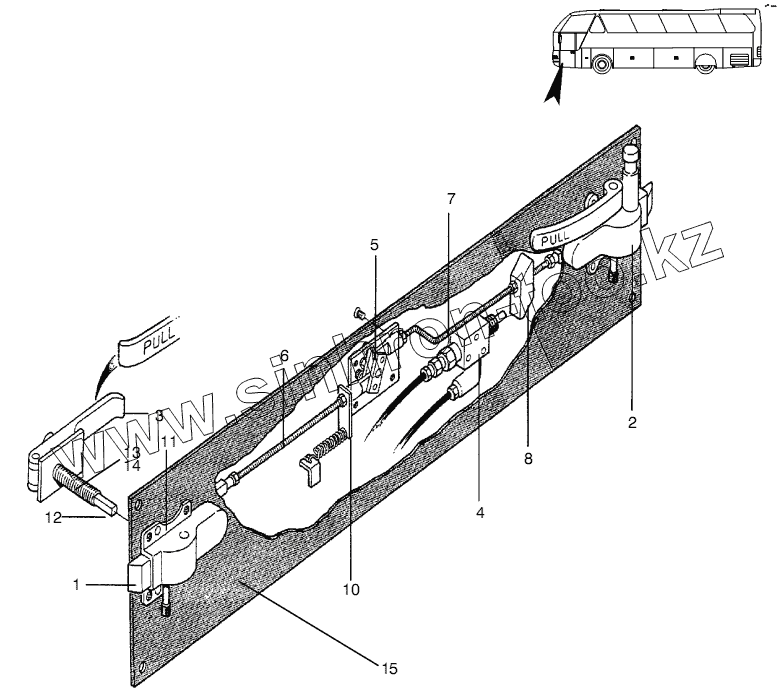 Каталог запасных частей к технике: Neoplan N 516 SHD (MAN) E2. EMERGENCY DOOR LOCKING SYSTEM