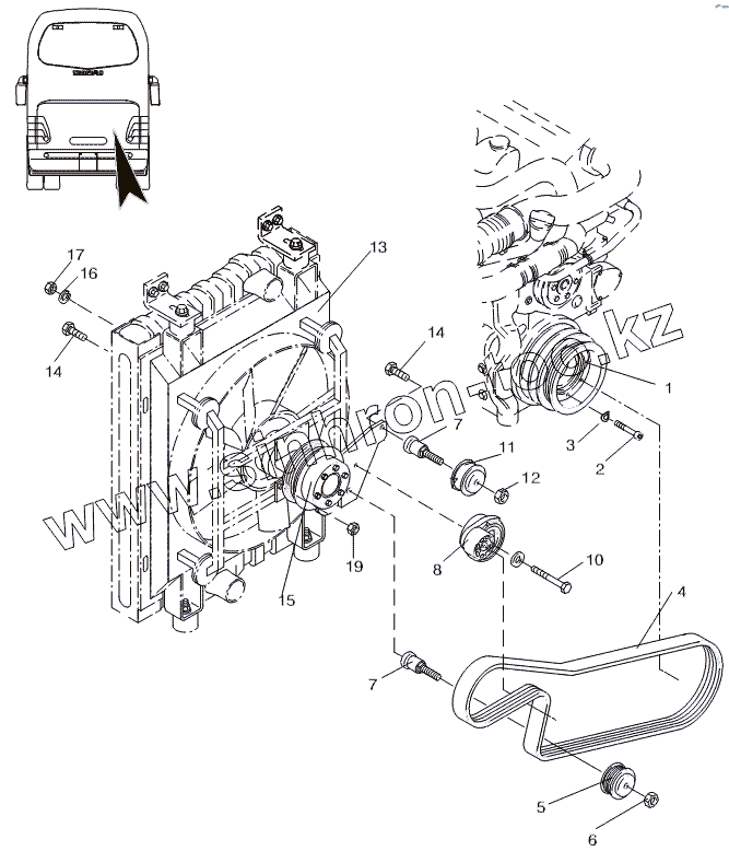 Каталог запасных частей к технике: Neoplan N 516 SHD (MAN) E2. FAN BELT DRIVE