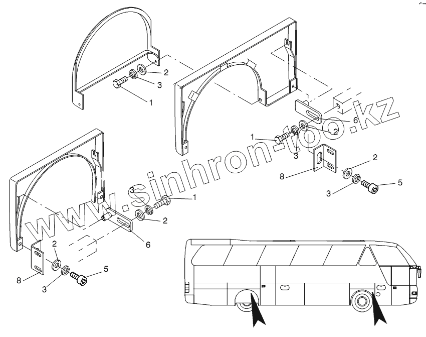Каталог запасных частей к технике: Neoplan N 516 SHD (MAN) E2. MOUNTING PARTS WHEEL HOUSE TALL