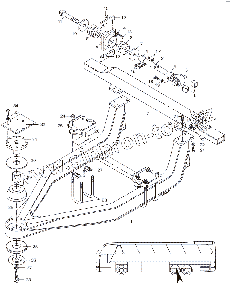 Каталог запасных частей к технике: Neoplan N 516 SHD (MAN) E2. REAR AXLE SUBFRAME