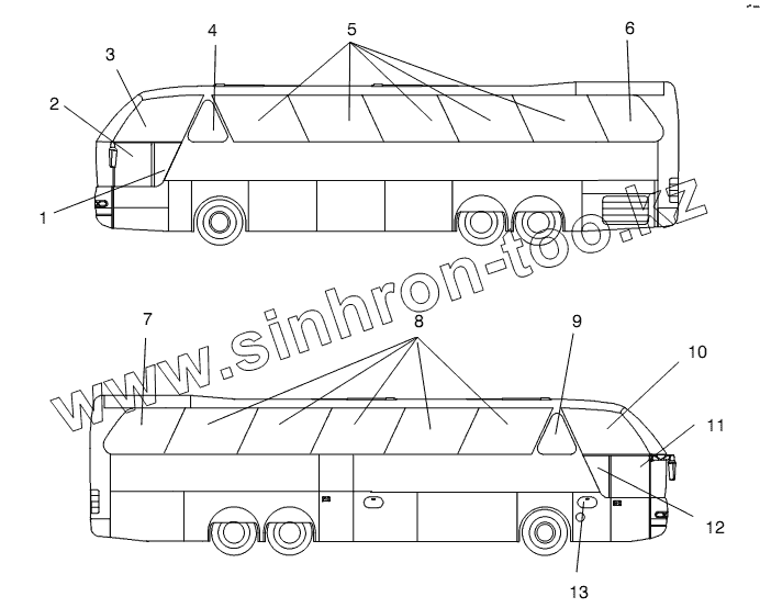 Каталог запасных частей к технике: Neoplan N 516 SHD (MAN) E2. SIDE WINDOWS