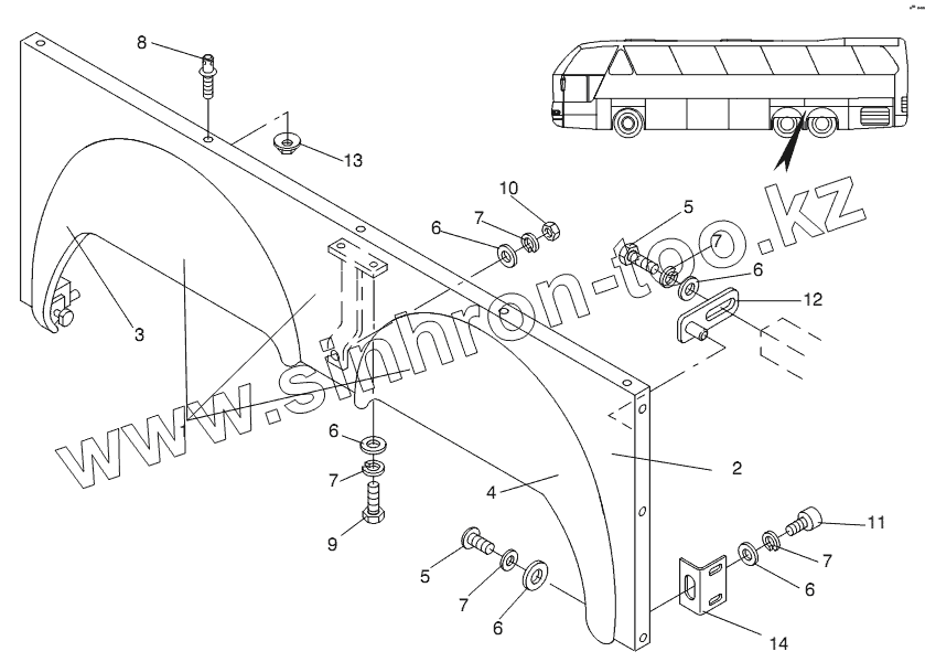 Каталог запасных частей к технике: Neoplan N 516 SHD (MAN) E2. WHEEL HOUSE REAR