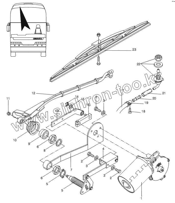 Каталог запасных частей к технике: Neoplan N 516 SHD (MAN) E2. WIPER SYSTEM TOP