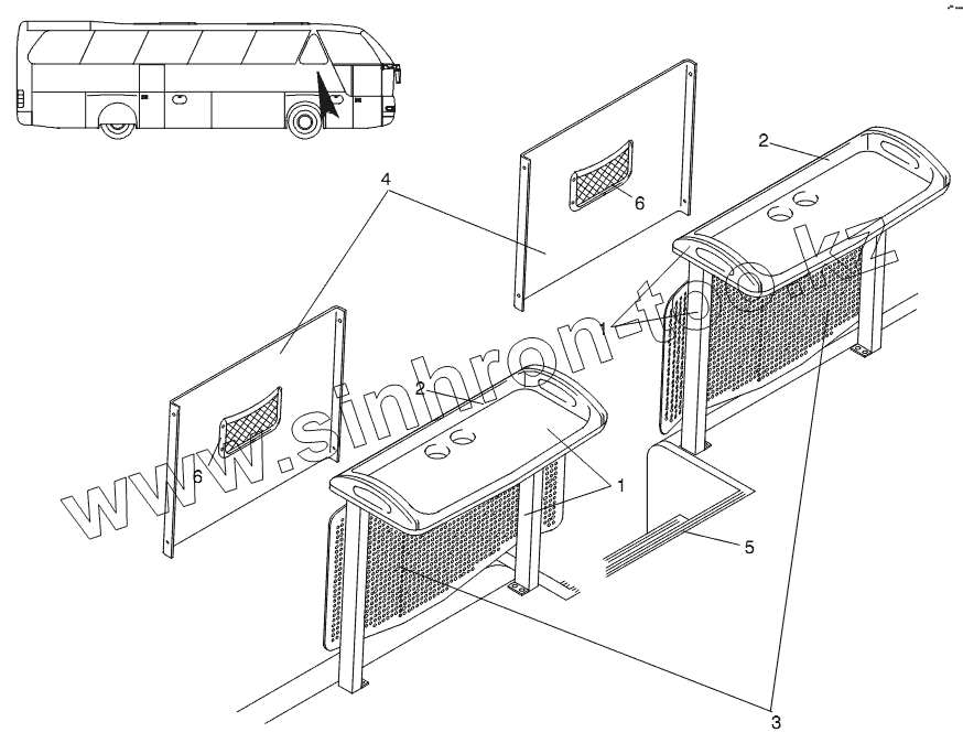 Каталог запасных частей к технике: Neoplan N 516 SHD (MAN) E3. HANDRAILS