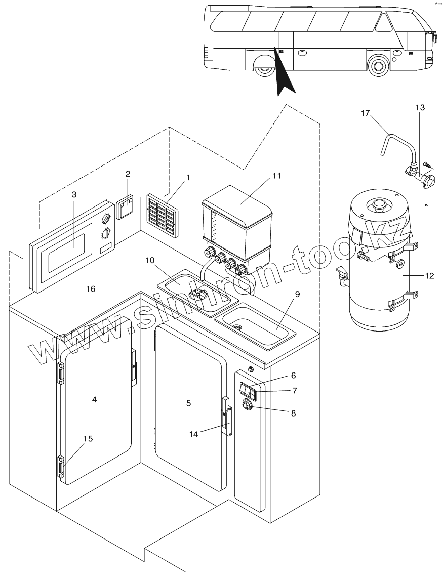 Каталог запасных частей к технике: Neoplan N 516 SHD (MAN) E3. KITCHEN WITH FRIDGE