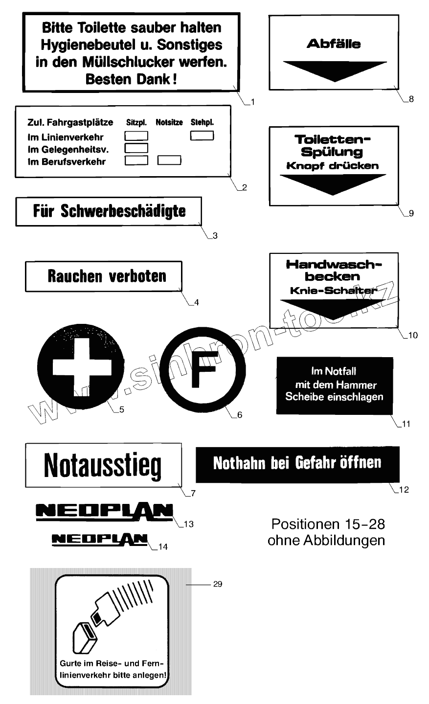 Каталог запасных частей к технике: Neoplan N 516 SHD (MAN) E3. SAFETY SIGNS