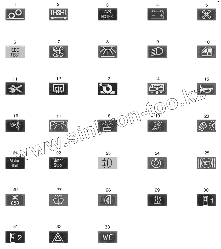 Каталог запасных частей к технике: Neoplan N 516 SHD (MAN) E3. SWITCH SYMBOLS DASH BOARD