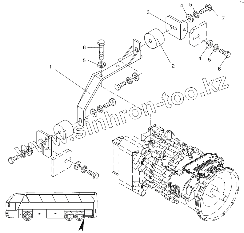Каталог запасных частей к технике: Neoplan N 516 SHD (MAN) E3. TRANSMISSION SUPPORT