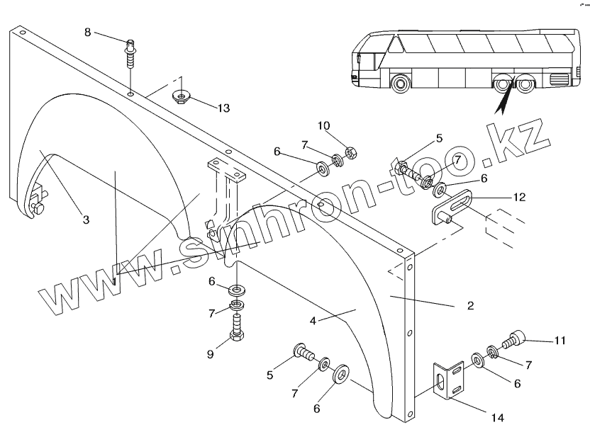 Каталог запасных частей к технике: Neoplan N 516 SHD (MAN) E3. WHEEL HOUSE REAR