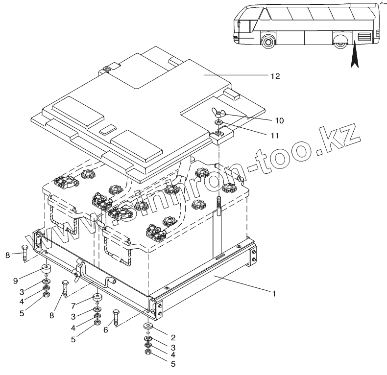 Каталог запасных частей к технике: Neoplan N 516 SHD (MB, DC) E2. BATTERY MOUNTING